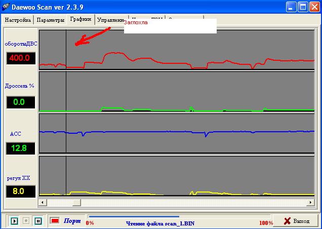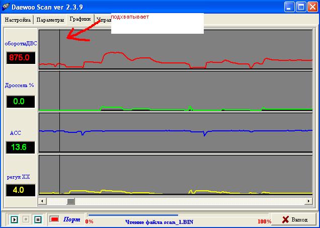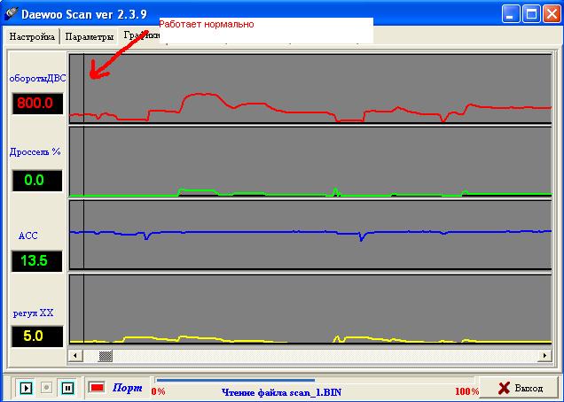 Судя по показаниям ДАД живой. ДПДЗ просто со временем обретает дребезг от износа проводящей поверхности потому таки методом проверить его не выйдет (да и не причём он тут при отпущенной педали газа). Если ХХ принципиально регулируется (т.е. ЭБУ может добавлять/снижать обороты) то РХХ явно подошёл (разве что форма иглы сильно отличатся - но это врядли). Возможно плохой аккумулятор или плохие контакты от него (как на нём, так и к массе). Т.к. контакты уже чищены, то можно попробовать подкинуть другой аккумулятор (временно для проверки). С генератором тоже могут быть грабли (на нём же регулятор напряжения + цепи этого регулятора). Прыгает ли напряжение так же, как на графике, на самом аккумуляторе? -------------------- Связь - как воздух: пока не испортится - её не замечают