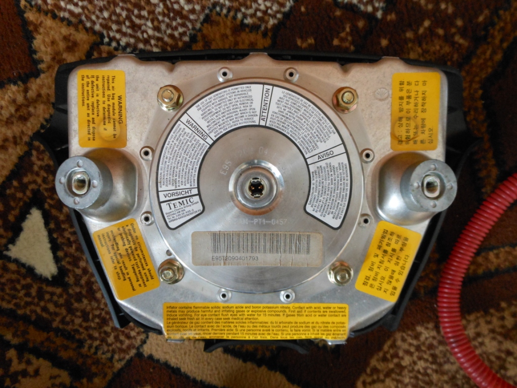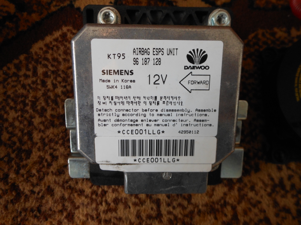 Так как с пассивной безопасностью у наших машинах туговато, то решил в машину установить с-му SRS (Airbag). Как известно, что в корейских машинах был сей девайс с завода инсталлирован, но почему то на узбечках решили убрать (посчитали, что не нужно) зря конечно! Вот и подумал, что было бы не плохо поставить с корейки весь комплект на свою (узбечку). Посмотрев схему подключения - выяснилось, что система работает индивидуально (без подключения к мозгам). Т.е. "+", "-", "провод на инд.на приборке", "провод на диагн.разъем" + "два провода на подушку". В блоке SRS установлен датчик (больше датчиков "удара" нет). При резком "торможении примерно 5G" - срабатывает в блоке этот датчик и посылает на подушку сигнал. Вот и весь принцип действия. Единственно нужно правильно установить блок "по направлению стрелки нарисованной на блоке" и закрепить блок на консоли под корпусом печки. Решил проверить с-му не устанавливая ее на авто (на наличие ошибок). При исправном блоке лампочка диагностики должна загореться и через 2-3сек. погаснуть, сигнализируя об исправности блока и подушки.
