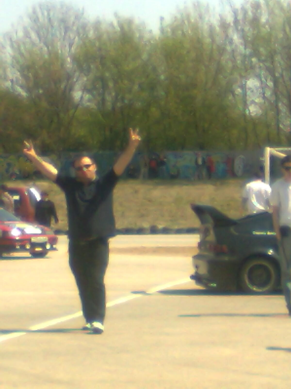 Моя машина стояла на тратуаре с рекламой инсталяционного центра, ето там где ти калеса после слалома менял А сам я стоял на кузове двух пикапов моего клуба! А не подошол поскольку поехал когда ти еще виступал(надо било подготовится чтоб поздравить наших учасников от клуба. А на моей машине ехал брат.