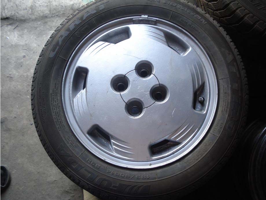 Всего 5 литых дисков, на 4 имеется летняя резина Fulda 185/60/14 (на исходе), 1 диск с зимней резиной Fulda 175/70/14. Все ровные и не гнутые, с колпачками. + железная запаска с зимней резиной Fulda 175/70/14. Цена за все - 1500 грн. Без торга - срочно! |
