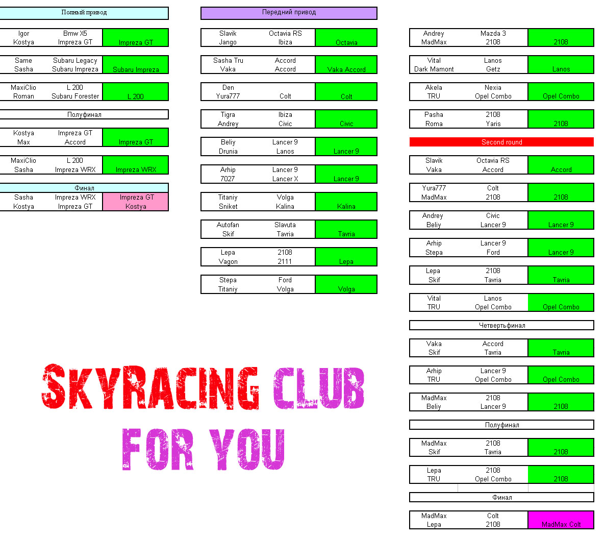 Мы открываем гоночный год в Киеве, а может и в Украине) И, кстати, это наша 165-ая гонка за всю историю Скай Рейсинга. В этом году нам будет 5 лет!!! Итак, Вднх! 15.01.10!!! Это будет красиво, это будет весело!!! Ждём всех на открытии гоночного года в Киеве!!! С ув.команда Sky Racing -------------------- |