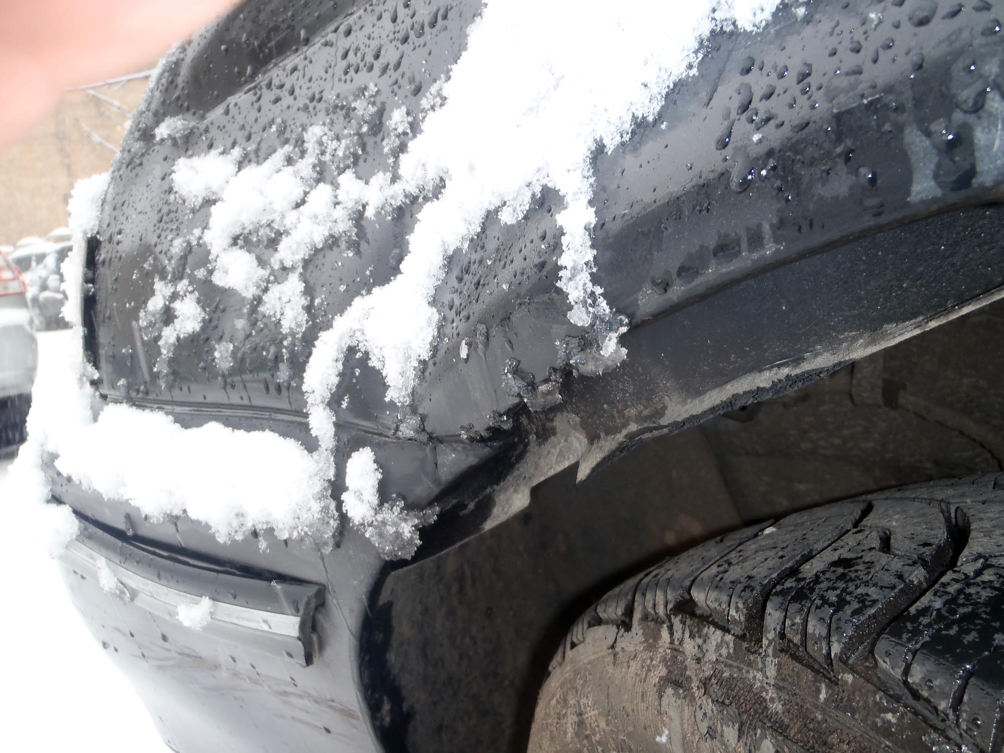 Почему все решили что пластик выгнуло, его нужно сначала снять а потом делать заключение. Пластик на ксюхах отличный, - догнал как-то по мокрой дороге четвёрку, - так у него бампер металлический погнуло, а у меня так, - царапины |