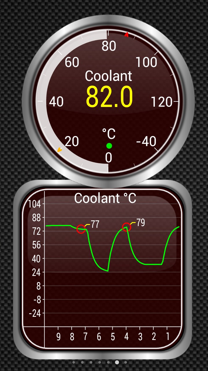 У меня на Пыжике диагностический разъем за полкой в районе кулисы, так он туда практически идеально становится, можно все время с ним кататься. А на днях помог мне выявить проблему с датчиком температуры тосола. Вот скрин-шот глюков моего датчика в программе Torque. |