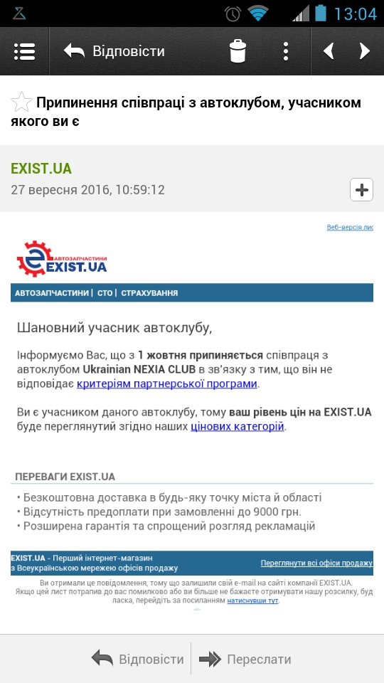 www.exist.ua Уважаемые клиенты и партнеры интернет-магазина авт... 25.6.2013, 16:24