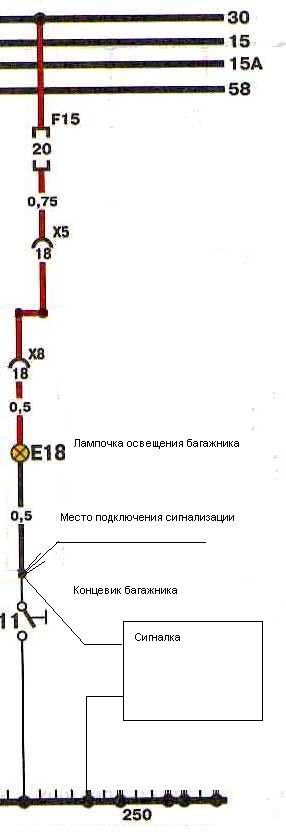 Концевик работает отлично! Минус на лампу приходит с сигналки которая не включена! Отаке. Поставил разрыв на плюсик лампочки и все Ок!! Я что-то непонял, или исправлена прежняя ошибка монтажа, или сигналка багажник не контролирует положения концевика или что? Вот схема подключения: -------------------- Кто сказал что электрик не воин света? Он всегда на щите или под щитом.