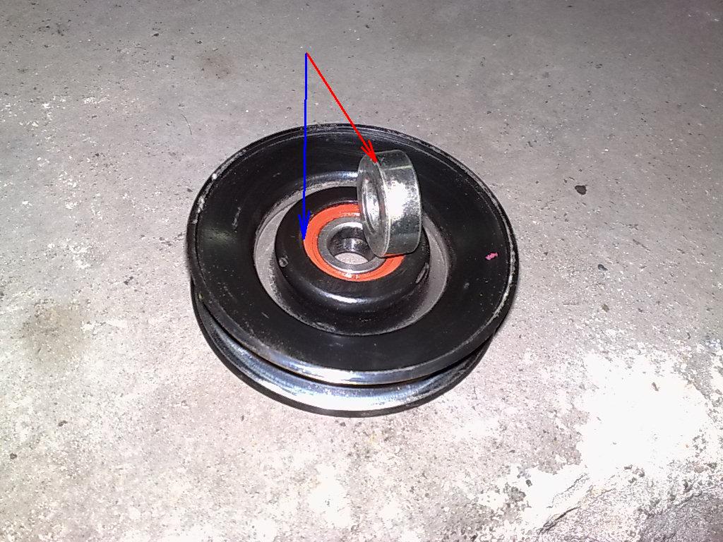 Тоже зашелестел ролик натяжной - купил на базаре немецкий подшипник(301).После замены стало все норм.Но через неделю опять появился этот неприятный звук.Еще на двух машинах таже проблема.При внимательном осмотре оказалось,что свистит не подшипник - трется сам ролик о дистанционную втулку с внутренней стороны ролика,и с наружной -об большую шайбу-пыльник.