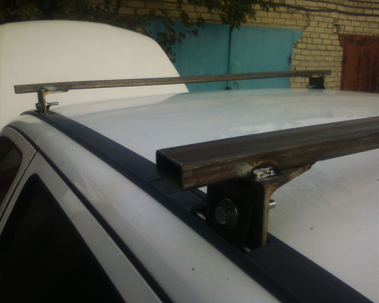 после обхода всех магазинов по автохламу и пересмотрев так сказать подобие на багажники на крышу-было принято решение делать его своими силами для этого в соседнем металопрокате было куплено: 1 210 см профиля 40на20мм 2 30 см уголок 60мм 3 болт м8 2см 4шт 4 гайки 4шт 5 диск 125мм для болгарки 2 шт всего на 70 гвн и один час работы Теперь на крышу спокойно ложу лестницу телескоп и она даж не шелохнется ОТАКО |