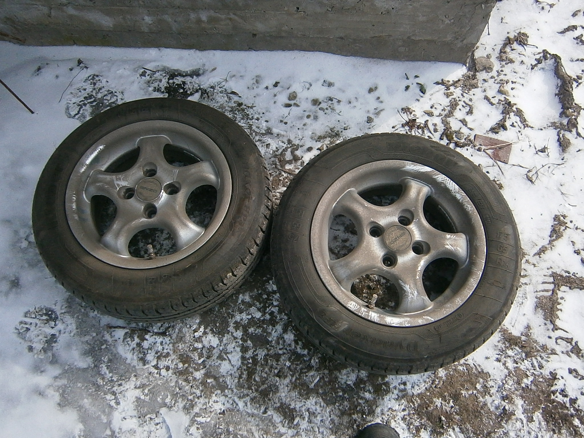 Глубоких царапин,бордюрной болезни-нет(протру остальные-сфотографирую-если надо).Стояла стоковая резина 185/60 Р-14,и 175/65 Р-14.Но у меня сзади-усиленные пружины были.