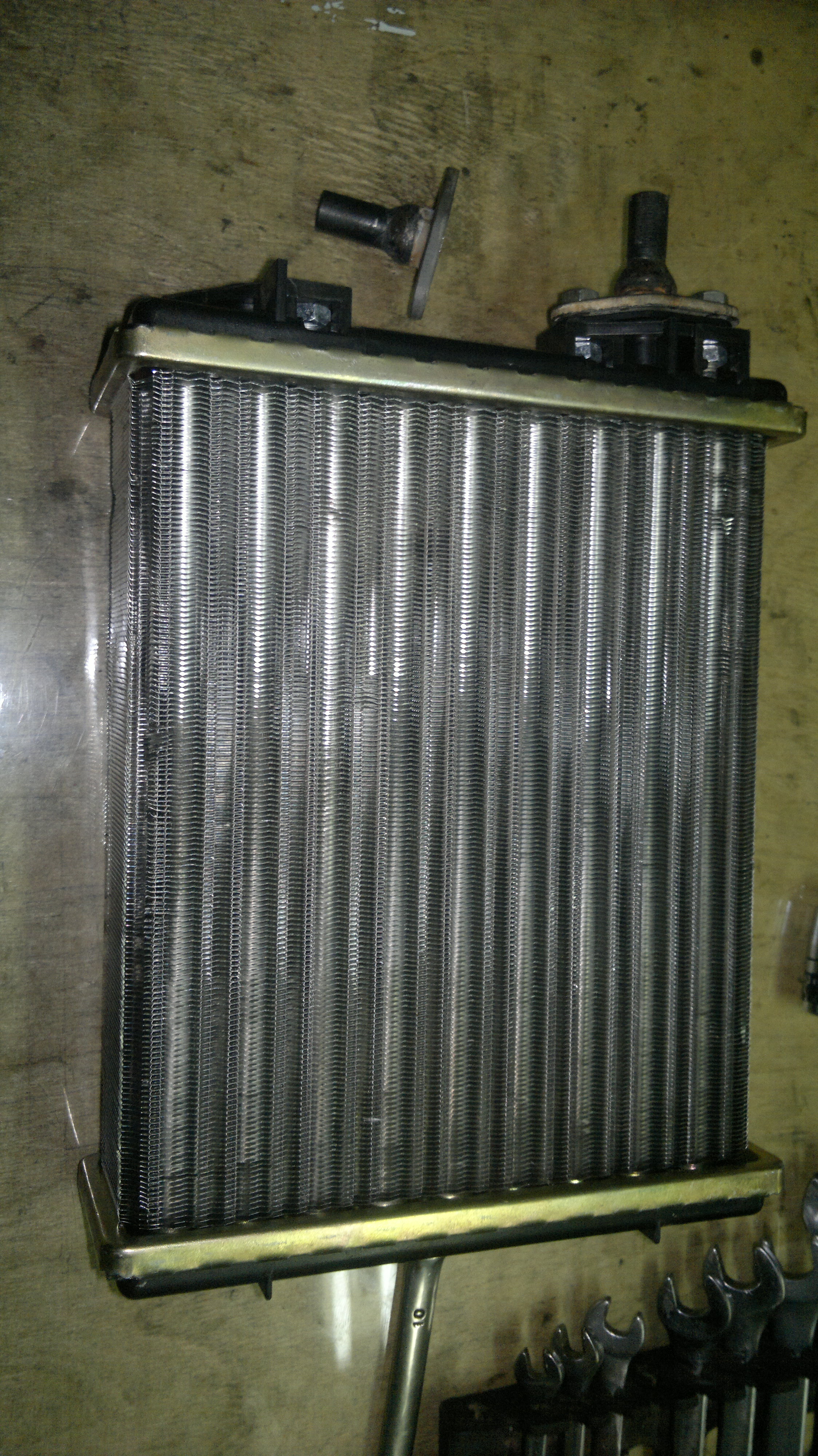 И вот нашел на поссийском форуме темка - там один чел поставил самодельный радиатор перед крыльчаткой печки. Я пошел тем же путем только ненашел такого радиатора и купил обычный жигулевский алюминиевый. вот что получилось: 1. Снял заслону "салон - улица" это перед крылаткой. 2. Наклеел фольгу на битумной основе (в эпицентре размер ее гдето 250Х350 мм цена 35 грн) чтобы закарыть большуюю прорезь в кузове которая идет в салон. 3. Потом купил метр квадратный серого пеноизол (52 грн. самоклеющийся 6 мм толщиной и проклеел квадрат для будующей установки радиатора.. 4. Купил две трубки резиновые для тосола (в любом магазине 20 гн. штука) 5. Установил радиатор (встал как родной). В МАШИНЕ ТЕПЛО, ДУЕТ ОЧЕНЬ ГОЯЧИЙ ВОЗДУХ, цена вопроса радиатор 110 грн, Шланг резиновый два штуки 40 грн., штуцера к радиатору два (по 12 грн. = 24 грн.) (они требуют небольшой переделки нужно перейти на меньший диаметр под шланг), фольга 35грн. и пеноизол 52 грн. хомуты (4 шт 8 грн.) ИТОГО: 260 грн. но оно того стоит. фото прилагается , , , , , Сообщение отредактировал Антон Луганск - 14.10.2013, 20:06 -------------------- И ЭТО ПРОЙДЕТ.