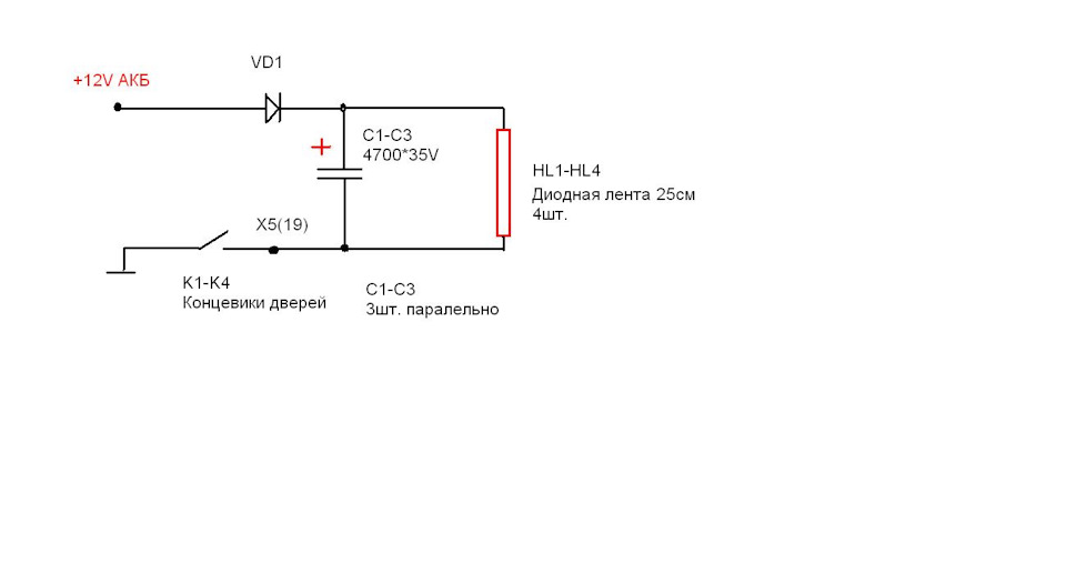 Взял себя в руки. Много писать не буду, много инфы по этому поводу. Купил две полоски ленты диодной (красной) по 50см, разрезал пополам, получилось 4шт. по 25см. Провел проводку и подключил. Сделал простейшую схему, для плавного гашения света. Может позднее штатную сделаю с плафонов VAG. Типа 8KD 947 415 C https://ru.aliexpress.com/item/OEM-Glove-Bo...36-26e389e28aee Схема Видео -------------------- ![]() I love Harley-Davidson and girls "Делай Добро и бросай его в воду... Оно не пропадет, Добром тебе вернётся" |