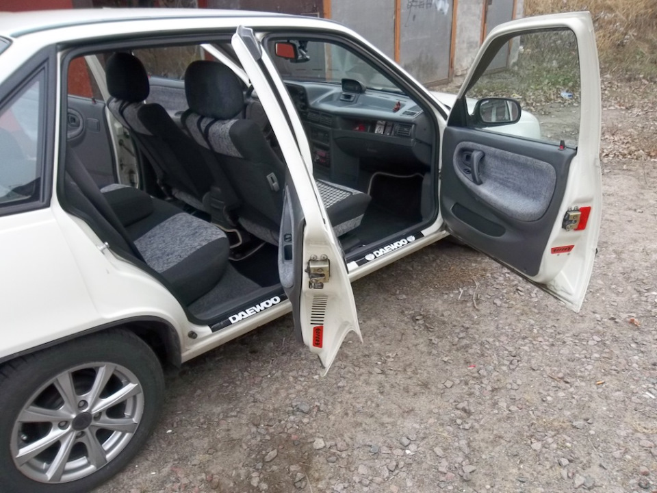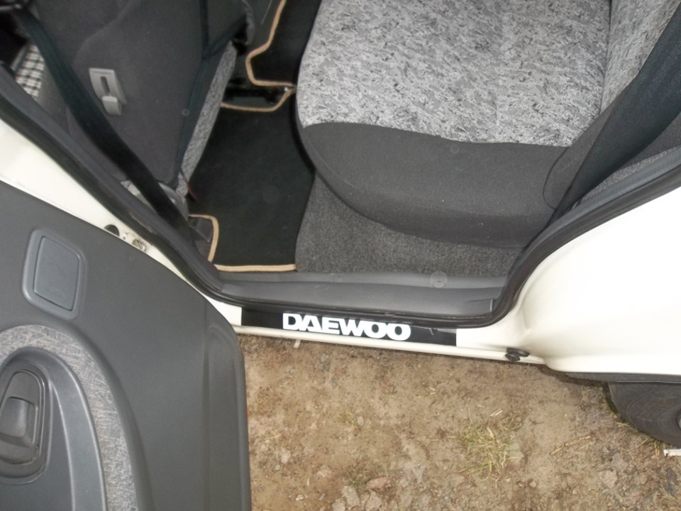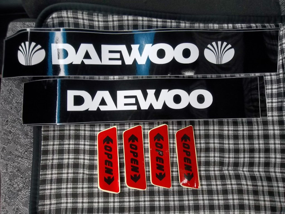 Предупреждающая, светоотражающая наклейка на двери. Размер одной 10х3см., толщина наклейки 0,1мм ! Наклейка «OPEN» — открыто, клеится липкой частью на торец двери авто. Наклейка светоотражающая, при открытии двери наклейку хорошо видно, что предупреждает водителе автомобилей идущих сзади, чем сохраняет как минимум двери вашего авто . Это не гламур и лишним никогда не будет. Безопасности много не бывает. Также для разнообразия взял наклейки на пороги с надписью DAEWOO. Позднее все таки возьму накладки с нержавеющей стали на пороги. Наклейки на пороги по ширине были шире, пришлось лишнее отрезать. Общий вид -------------------- ![]() I love Harley-Davidson and girls "Делай Добро и бросай его в воду... Оно не пропадет, Добром тебе вернётся" |