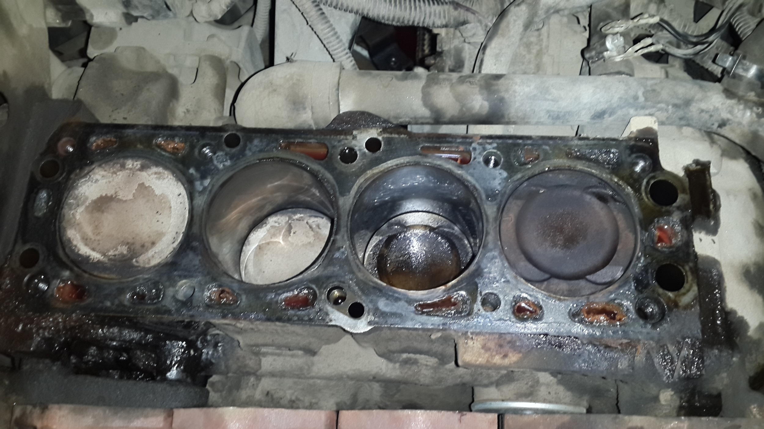 Вскрытие показало, что движок ранее был перегрет (я второй хозяин 10тыс. проехал), антифриз попадал через прокладку в цилиндр, а от туда в выхлоп. Вот почему я уже 2тыс. км не могу найти куда уходит тосол. Вот так на 126тыс. (если конечно первый хозяин, вернее хозяйка не отматала моторесурс) приходится делать средний ремонт: компрессия по 8.5 в цилиндрах, маслоотражательные колпачки не рабочие, кольца поршневые тоже, клапана в коррозии.