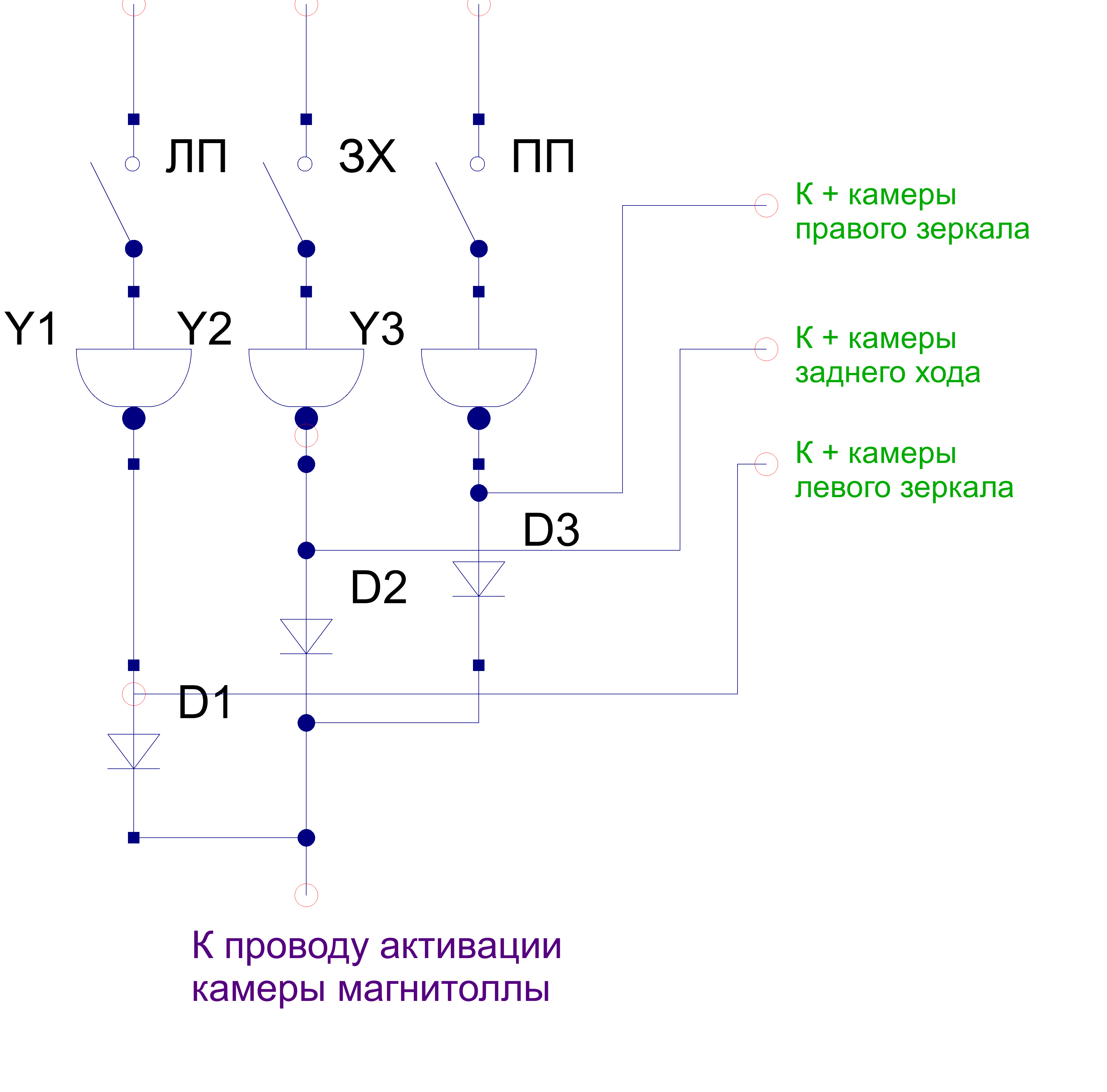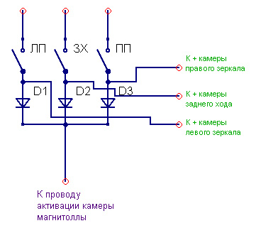 Давно хотел систему кругового обзора, но при её цене понимаю что нужно что то сделать самому. Уже были куплены камеры в зеркала (врезные снизу) и никак немог придумать как совместить 4 камеры в одну картинку... Недавно увидел на ниссане при включении поворотника включается камера с той же стороны. Вроде как схемку придумал, но вот как бы сделать чтоб при выключении поворотников питание с камеры и активации парковочной камеры магнитолы не отключалось 5-10 секунд? Может кто подскажет схемку задержки выключения попроще? |