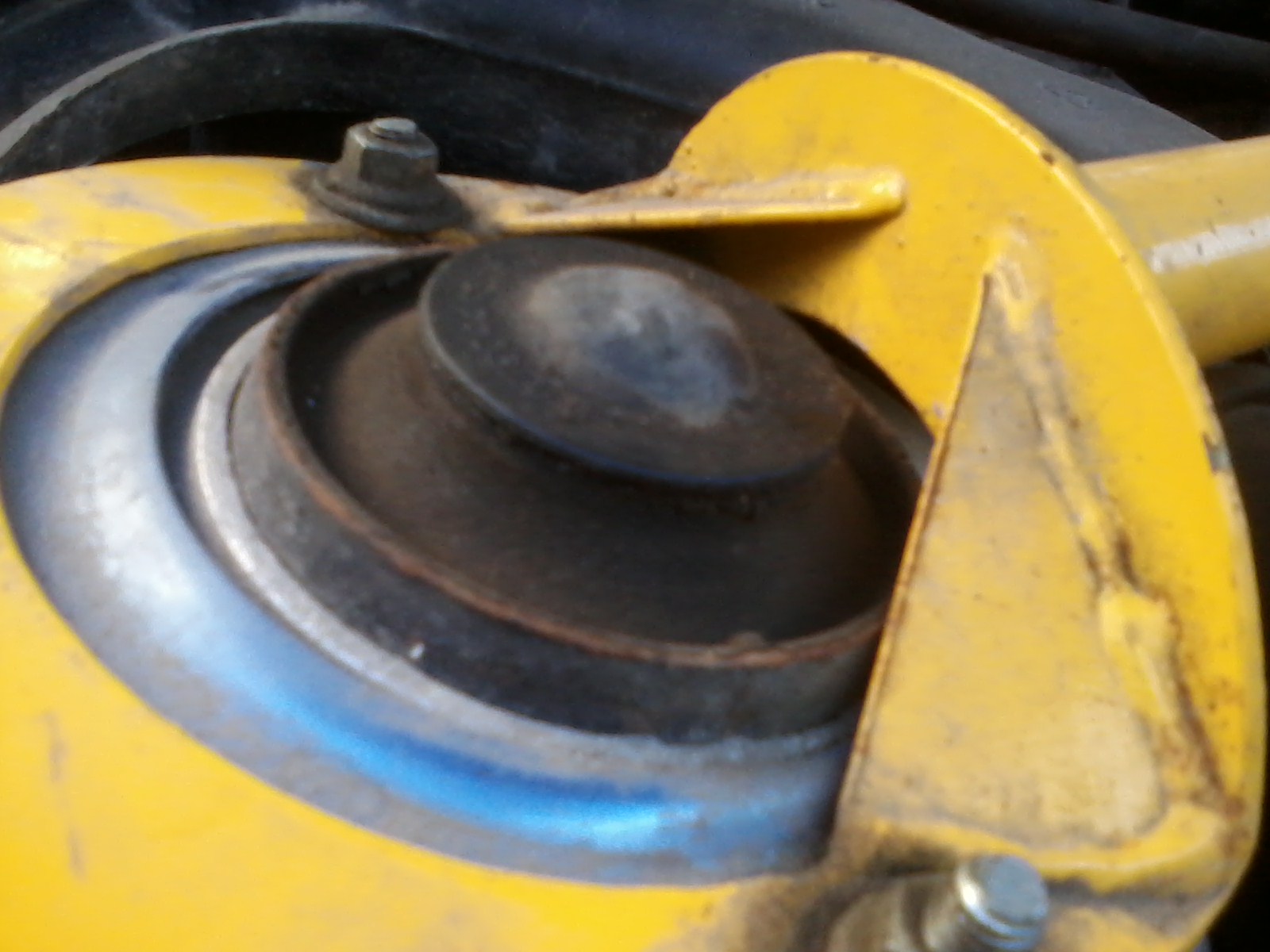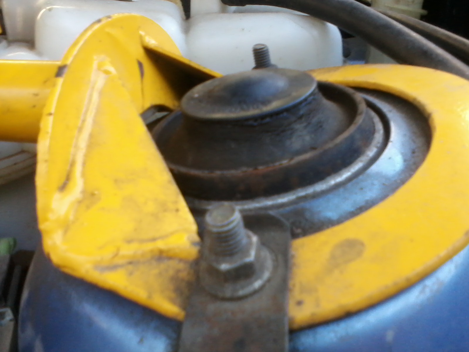Не много вылезли. Для проверки сними крышечку и двумя пальцами (пальцем) легко на шток положи и шатай машину, люфтов, стуков не должно быть. Только не сильно пальцы к штоку нажимай. Нифига себе немного... Им кабзда! Будешь на таких ездить дальше, вместе с опорами поменяешь и чашки, что внутри пружину держат. |