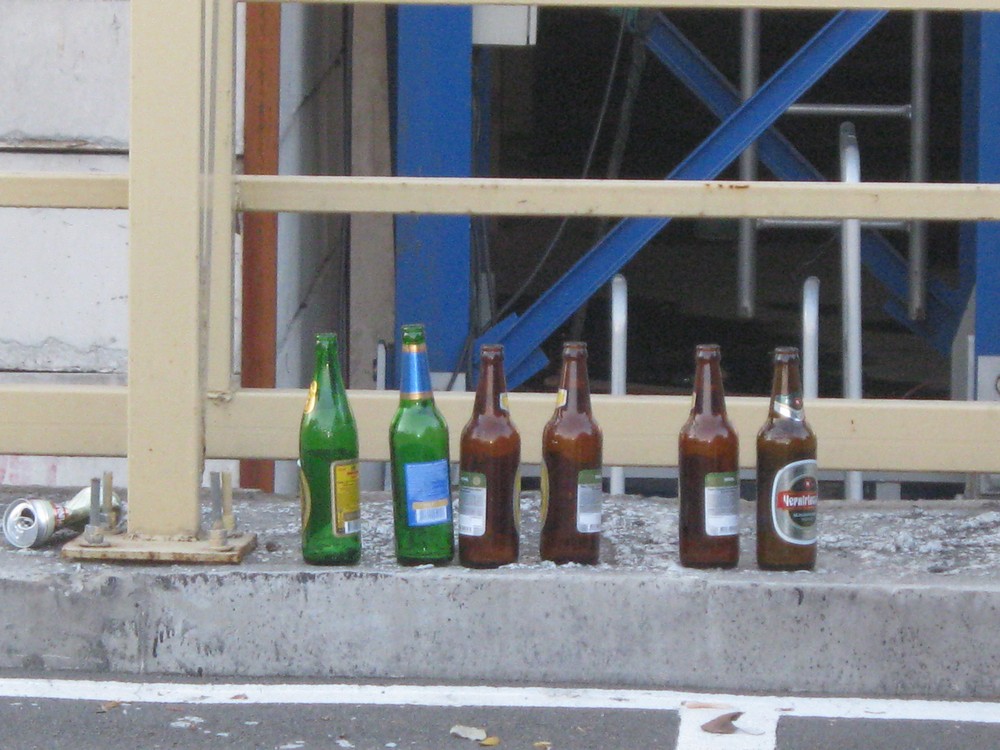 6 бутылок из-под пива и седьмая жестяная банка с Балтикой-нулевкой. Какой декадентствующий снимок.