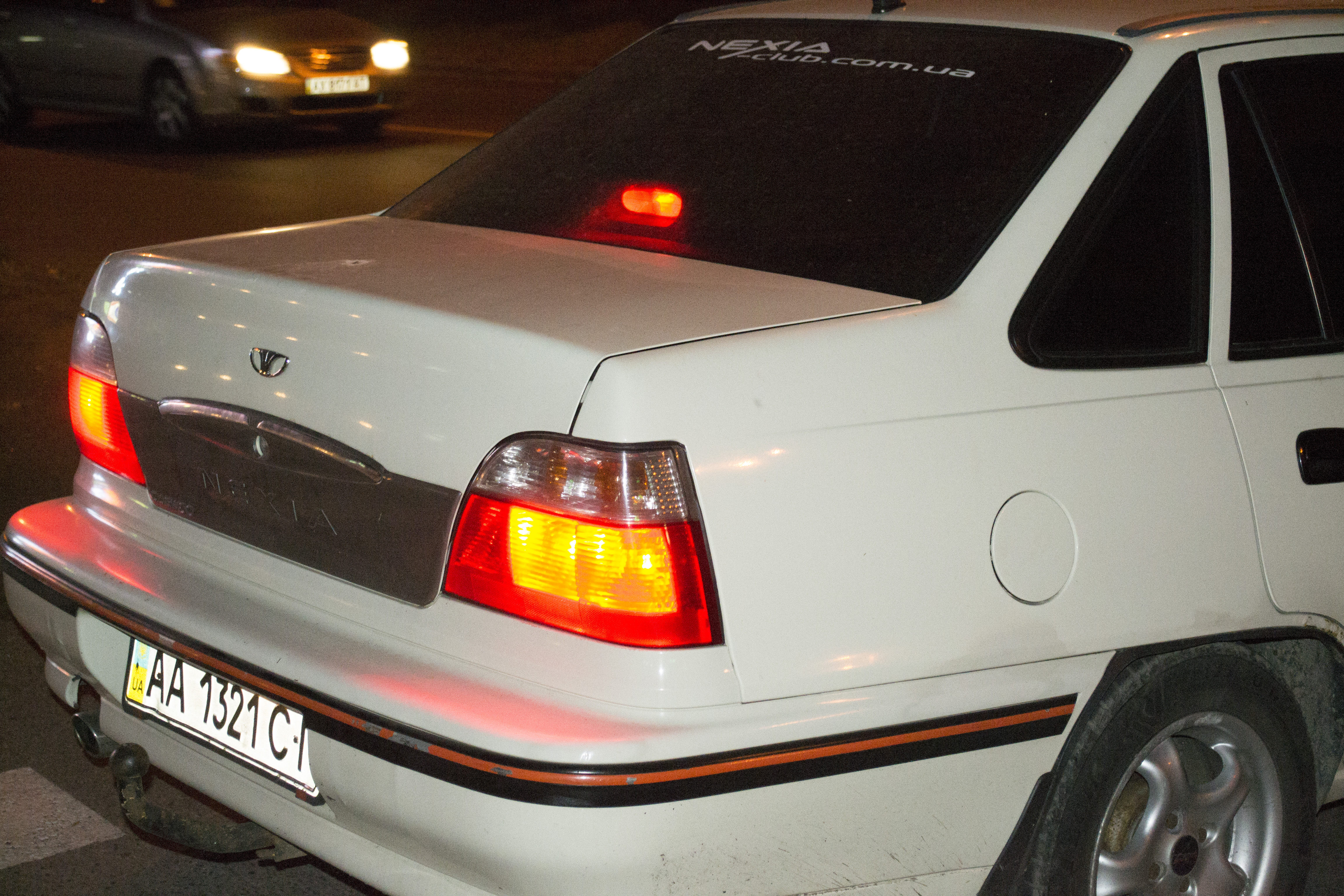 фа-фа сегодня, около 11-00, в районе Почтовой площади клубной нексии, вроде кореянка....с большой наклейкой на левой части багажника.
