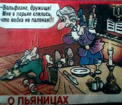 - Новые веяния не оставляют равнодушными даже старых зубров? - Ты это про серьгу? Не обращай внимания, приходится, знаешь ли, иногда выкинуть что-нибудь этакое. - И давно с тобой это? - Ну... с тех пор, как жена нашла эту серьгу в нашей постели. ------------------------- Встречает Серый Волк Красную Шапочку и говорит: - Ну, ты сама понимаешь: у тебя есть два варианта. - Какие? - Ну... Либо слияние... либо поглощение. ------------------------- - Бэрримор, что у меня хлюпает в ботинке? - Овсянка, сэр? - А что она там делает? - Хлюпает, сэр! -------------------- Плакала береза, плакала осина, только конопля ржала, как скотина... |
