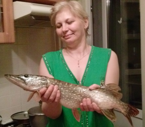 А я вчера после работы на речку поехал, ничего не ловилось и пришлось спиннингом поработать. На вертушку поймалась вот такая рыбина. Фото делал уже дома, в роли фотомодели выступила жена.