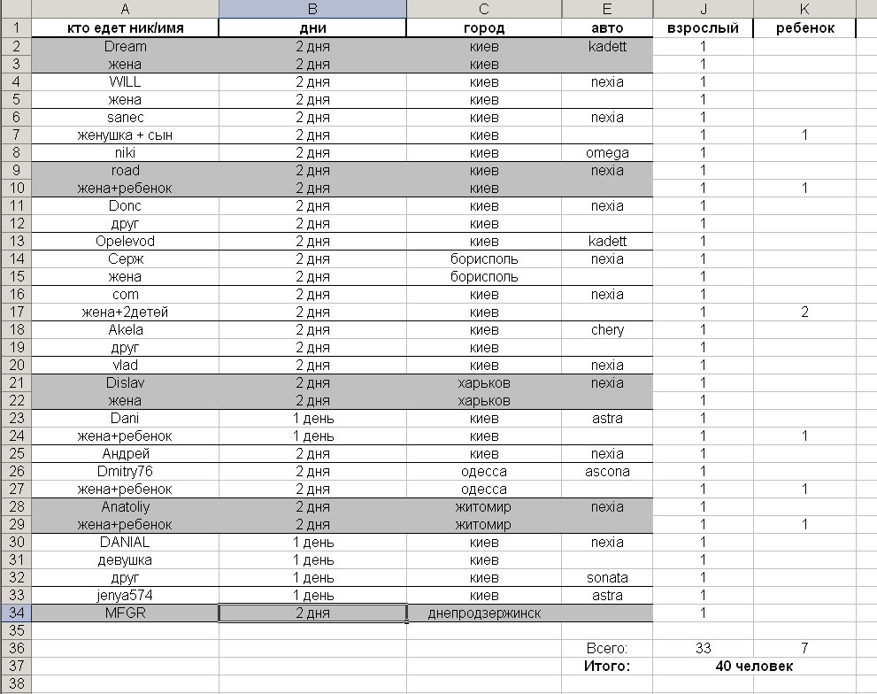 Список тех кто едет на СЛЕТ! (мож кого-то упустил, стучите в личку) ты кого то у меня забыл я+жена + 1 спиногрыз+ еще 1 спиногрыз = 4 штыка а вообще сложная табличка для понимания! -------------------- 6750
