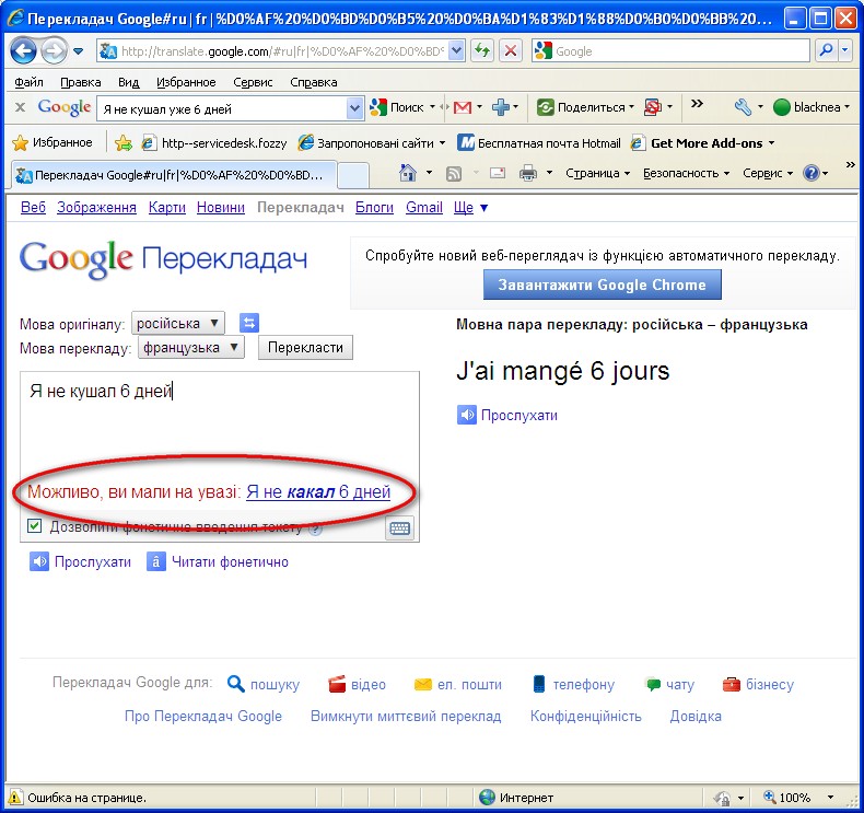 Решил себя перепроверить по переводчику гугле по поводу перевода на французский знаменитой фразы из 12 стульев "я не кушал 6 дней". Вот что получилось: У меня истерика -------------------- Я не ленивый. Просто меня хранит великий древнеегипетский бог покоя и умиротворения Данунах