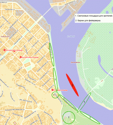 чудеса пиро-музыкального шоу команды из Италии, Германии, Украины и Франции - каждая будет "стрелять" 12 минут, между выступлениями - перерыв 10 минут. То есть действо будет длиться до 23-30. "Танцующие фейерверки" можно будет полностью ощутить (увидеть и услышать синхронно) на Набережной Днепра в районе Речного вокзала. Там будет установлен звук (мощный) протяженностью 800 метров. Схема во вложении. Без синхронного звука шоу можно будет наблюдать с Владимирской горки и Арки Дружбы Народов. На Труханов остров въезд будет закрыт. Искренне советую каждому прийти и друзьям рассказать! Так как подобное зрелище передать на фото, видео, а тем более словами - НЕРЕАЛЬНО! Впервые в Украине - выступают европейские пиротехники! Впервые -пиро-музыкальное шоу, разнообразные ритмы! Впервые - на Днепре! (фронт отстрела, то есть длина выстрелов на баржах - 170 метров) Впервые - так долго и качественно! Максимально разрешенная в Украине высота отстрела - 200 метров. Подобное шоу в Сеуле, только под 1 классическую музыку и протяженностью 5 минут: http://www.youtube.com/watch?v=dWITE0gyly0 Промо-ролик феста на Мальте: http://www.youtube.com/watch?v=ggsGPB8rTcM Справка: в мире такие фестивали проходят в Италии, Германии, Франции, Сингапуре, Японии, Австралии, Южной Корее и на Мальте. Во всем мире австралийцы считаются мастерами фейерверков и иллюминаций. В правительстве страны есть даже соответствующая должность - министр фейерверков и огня. В Украине ранее статус "международный" получали фестивали с участием российских пиротехников. Для ТВ будет экскурсия на подготовку барж с пиротехникой 19 июня. Ура таким праздникам в нашей стране!!! Надеемся, что Фестиваль Фейерверков станет ежегодным. |