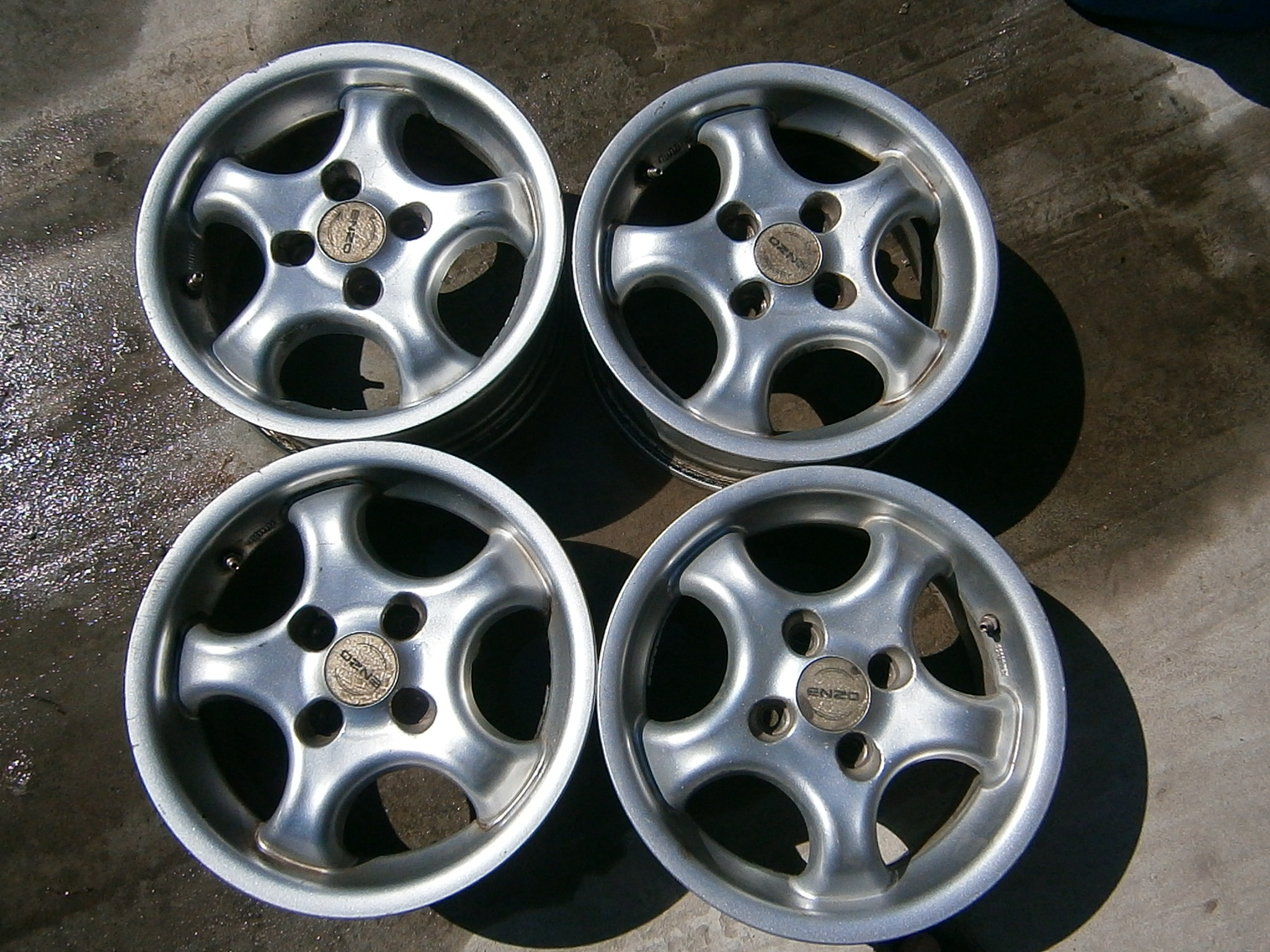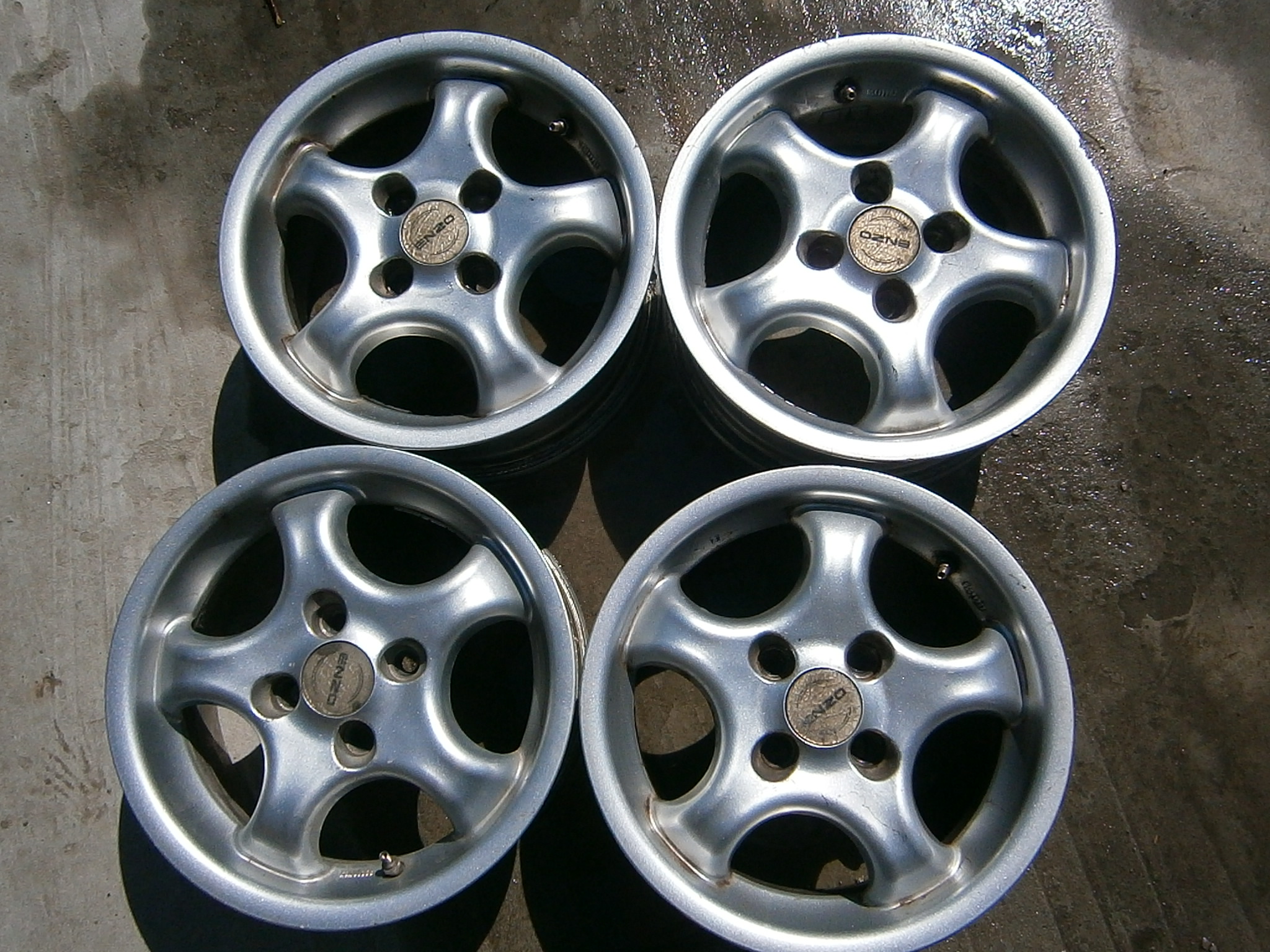 Продам диски Enzo(Германия) R-14 4*100,ET-38,Dia-,больше 56,5-стояли на нексии-спереди ничего не цепляет,сзади-у меня стояли усиленные пружины-не терло о подкрылок-если проставок,или усиленных пружин-наверное будет немного затирать.Стоимость комплекта-1500.