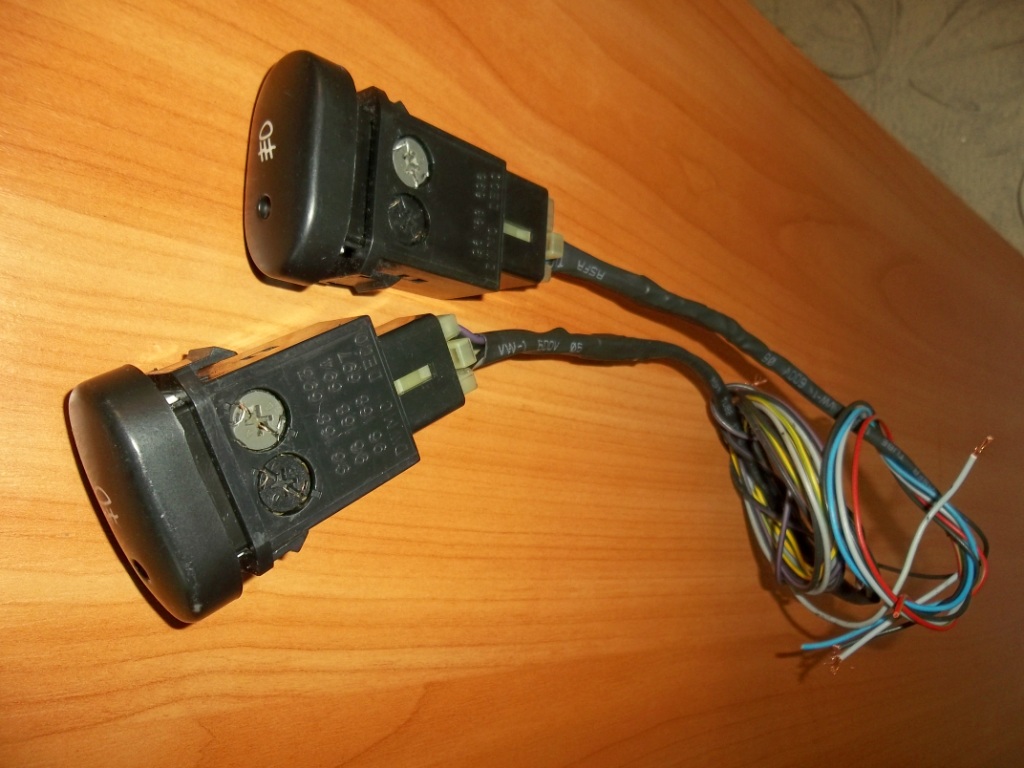 Так как кнопок дополнительных не хватает, то решил установить оригинальные доп. кнопки только в другие места. Т.к. вместо задних ПТФ у меня стоит выключатель обогрева зеркал, а кн.заднего ПТФ снял (не так часто пользовался), так вот решил ее установить назад, плюс кнопку включение автоматического ближнего света (что бы при необходимости можно ее отключить). Кнопка эта у меня уже была только в другом месте, труднодоступном. Кнопки будем монтировать на панели кнопок (внизу с каждой стороны).