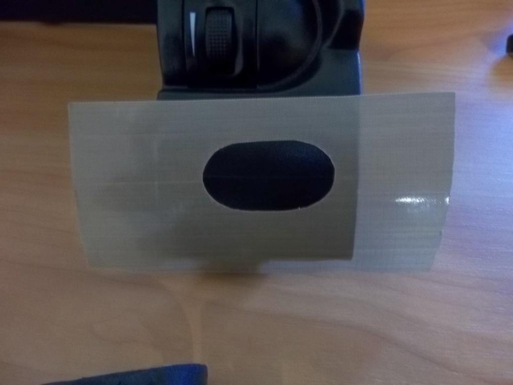 Накладываем самоклеющий шаблон. Нужно для того, что бы точно выточить и не поцарапать свою панель.
