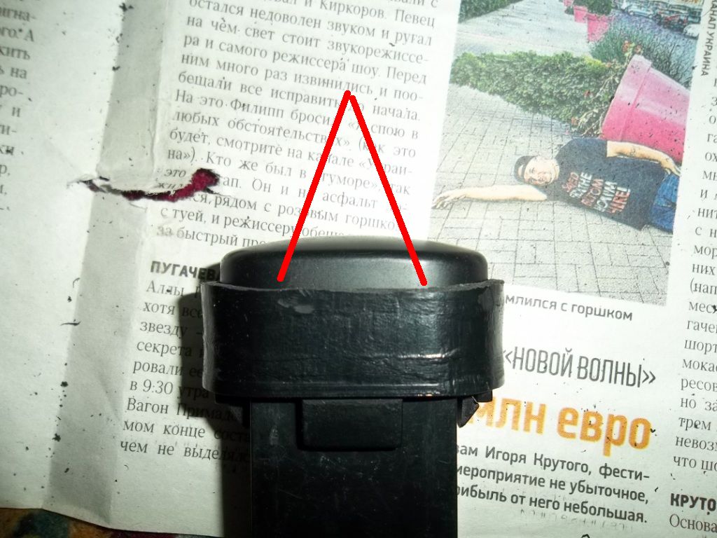 Нажмите для просмотра прикрепленного файлаРазмечаем, где должна быть кнопка, при этом примерям на машине, что бы кнопка безпрепятственно зашла во внутрь и не чего не задевала, это важно! Она в то место особенно справа входит впритык.