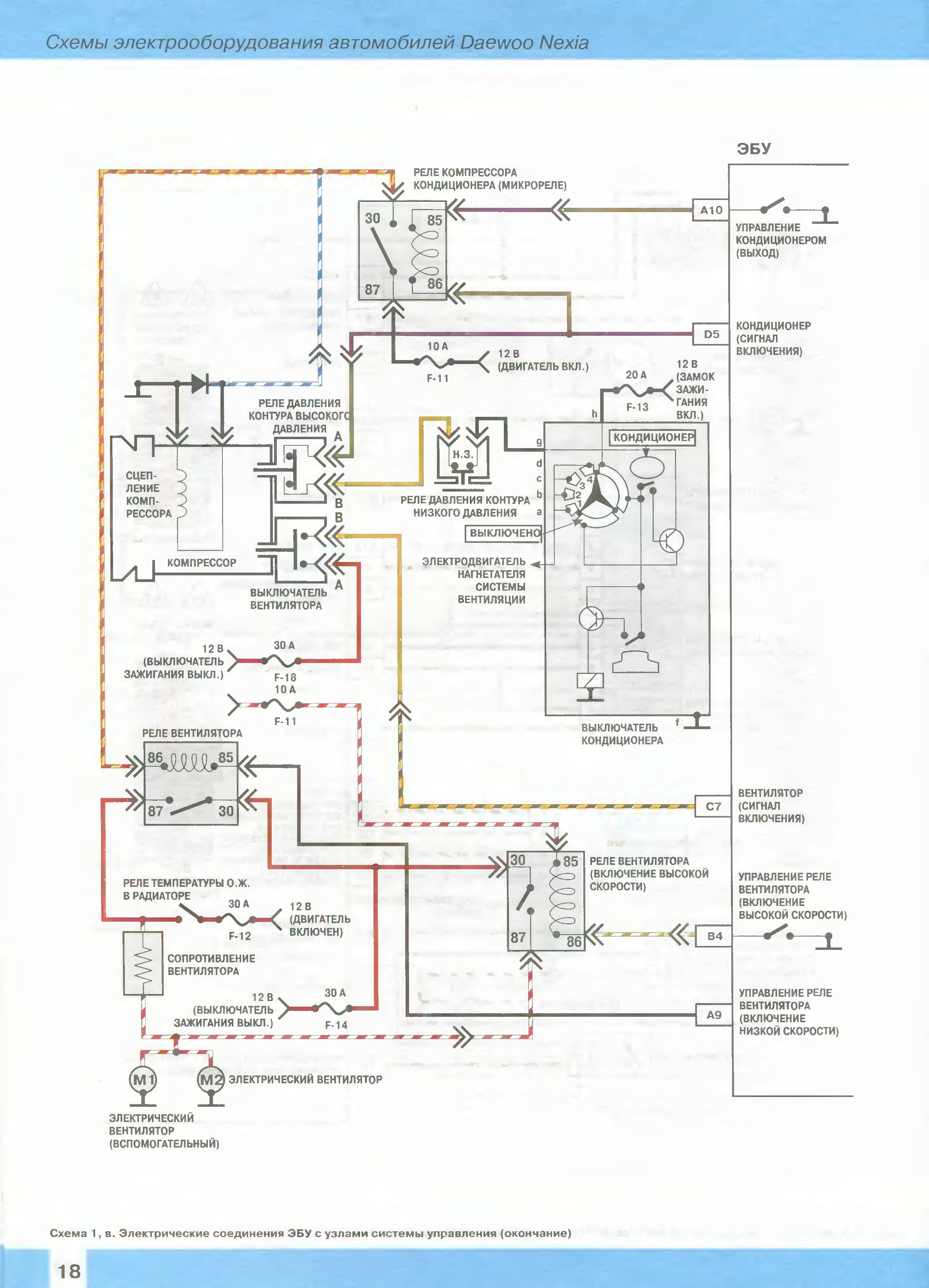 Синяя - датчик включения вентиляторов с него идет на ЭБУ (подает питание на ЭБУ), красный - высокого давления. Тот что на трубке и красный, должны быть последовательно соединены, т.е. (при срабатывании хоть одного - система не включится).
