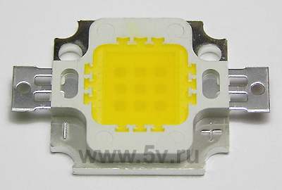 З приводу ж 10в світлодіода - це вже й так батарея з послідовно-паралельно з'єднаних світлодіодів. Один світлодіод зазвичай розрахований на 3.0 - 3.5 В.