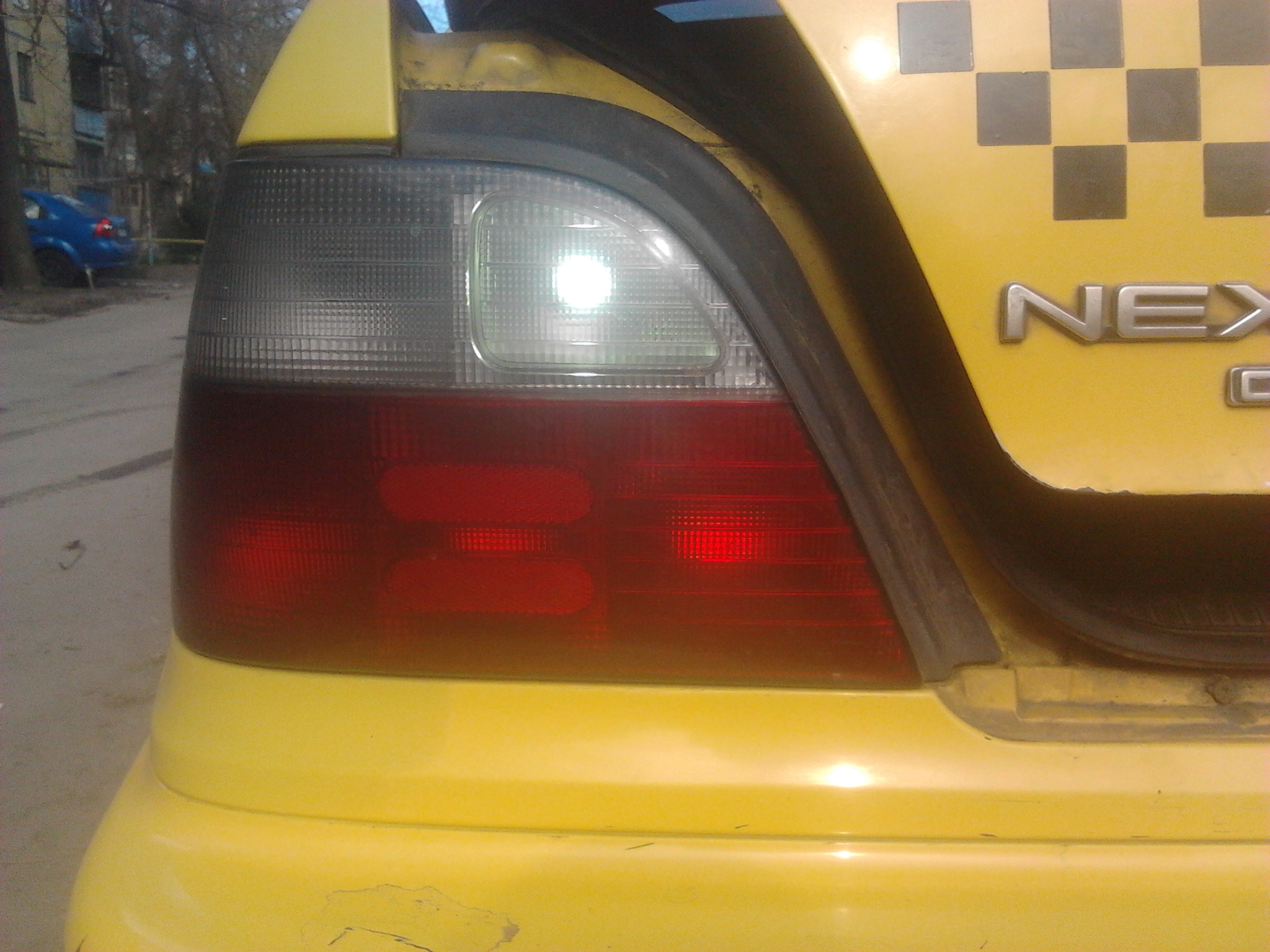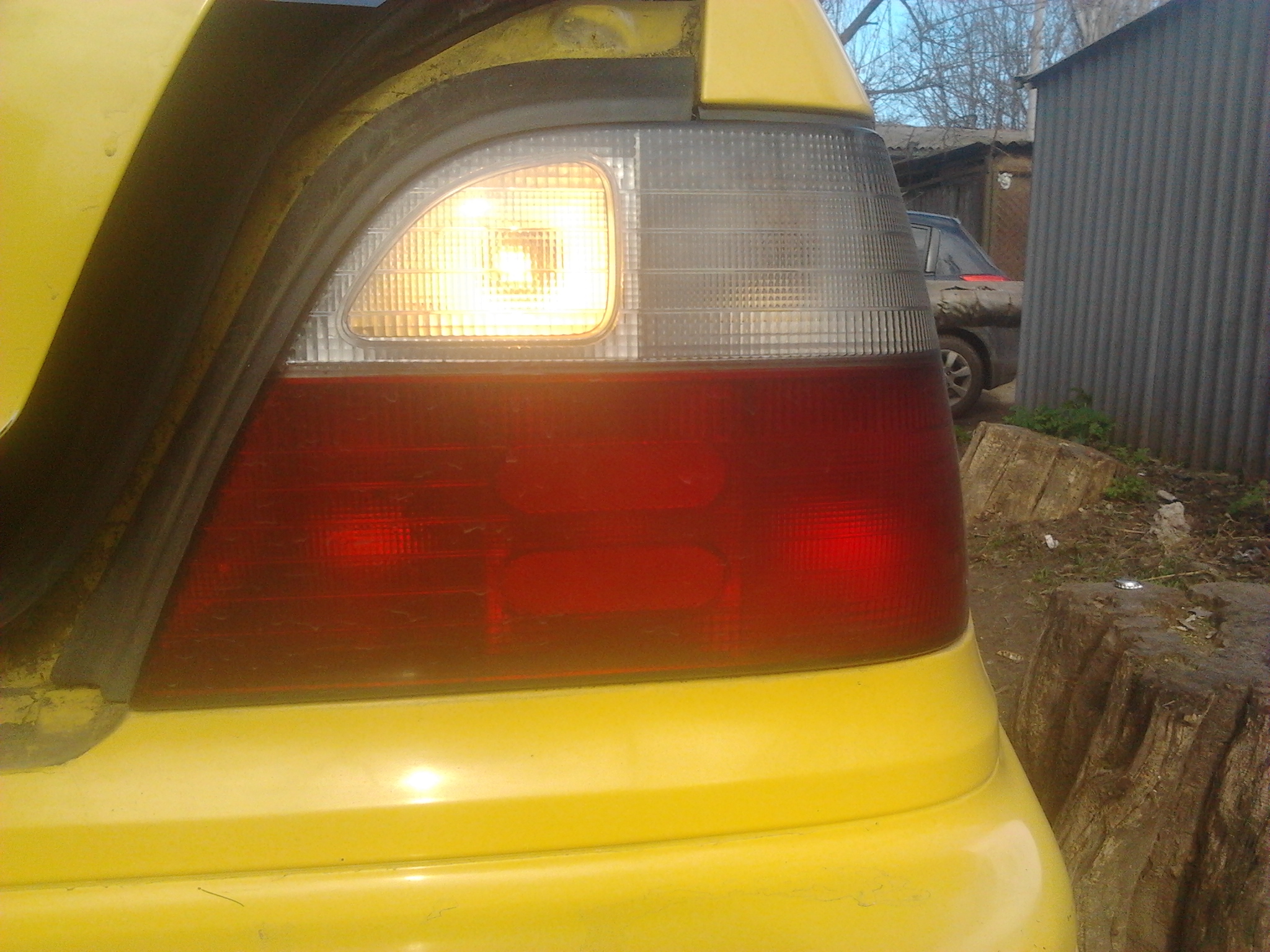 Вот и фото сделал.На фото конечно не так как в жизни.специально подъехал к воротам задом,одна обычная лампочка,а вторая светодиодная.Светодиодная светит намного лучше и дальше,подъезжая задом к воротам я видел все четко из бокового зеркала,чего нет в стоке.Но есть но-свет очень рассеивается и границы из за этого не четкие.Пока так сделаю,а дальше думать буду.