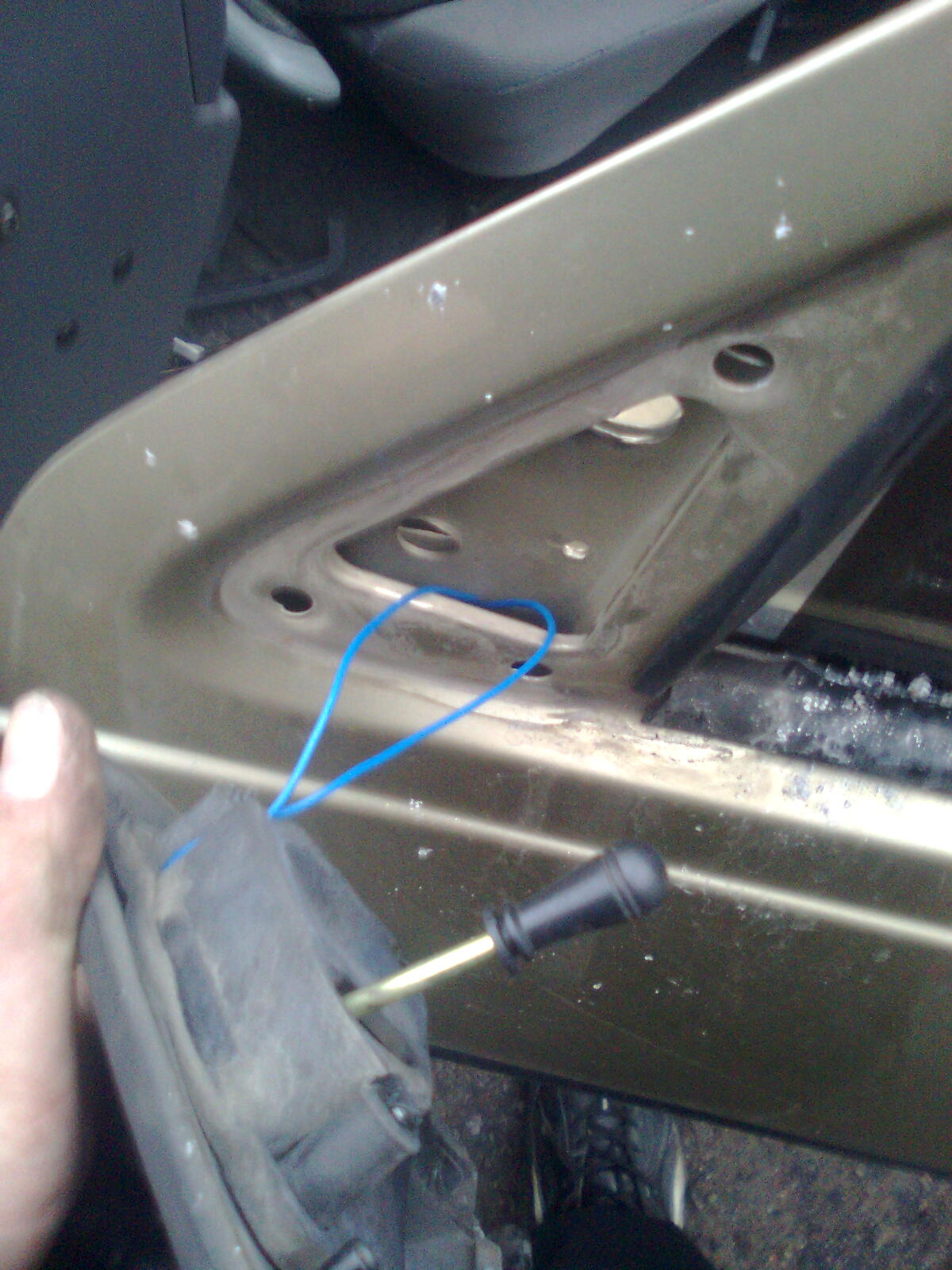 Нажмите для просмотра прикрепленного файлапротягиваем провод внутрь двери. (Карту придется снять, хотя если много времени то можно попробовать протянуть и не снимая)