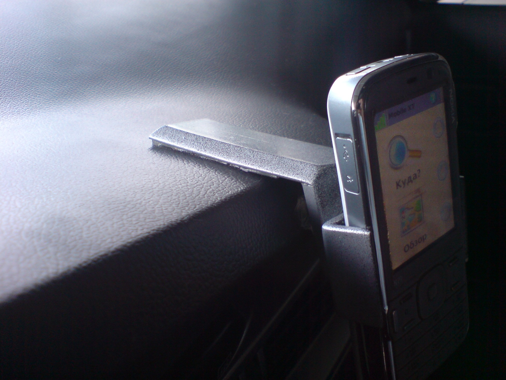 Берешь кусочек резинки против скольжения, ложишь на панель приборов, а поверх и навигатор. И удобно и не отсвечивает..