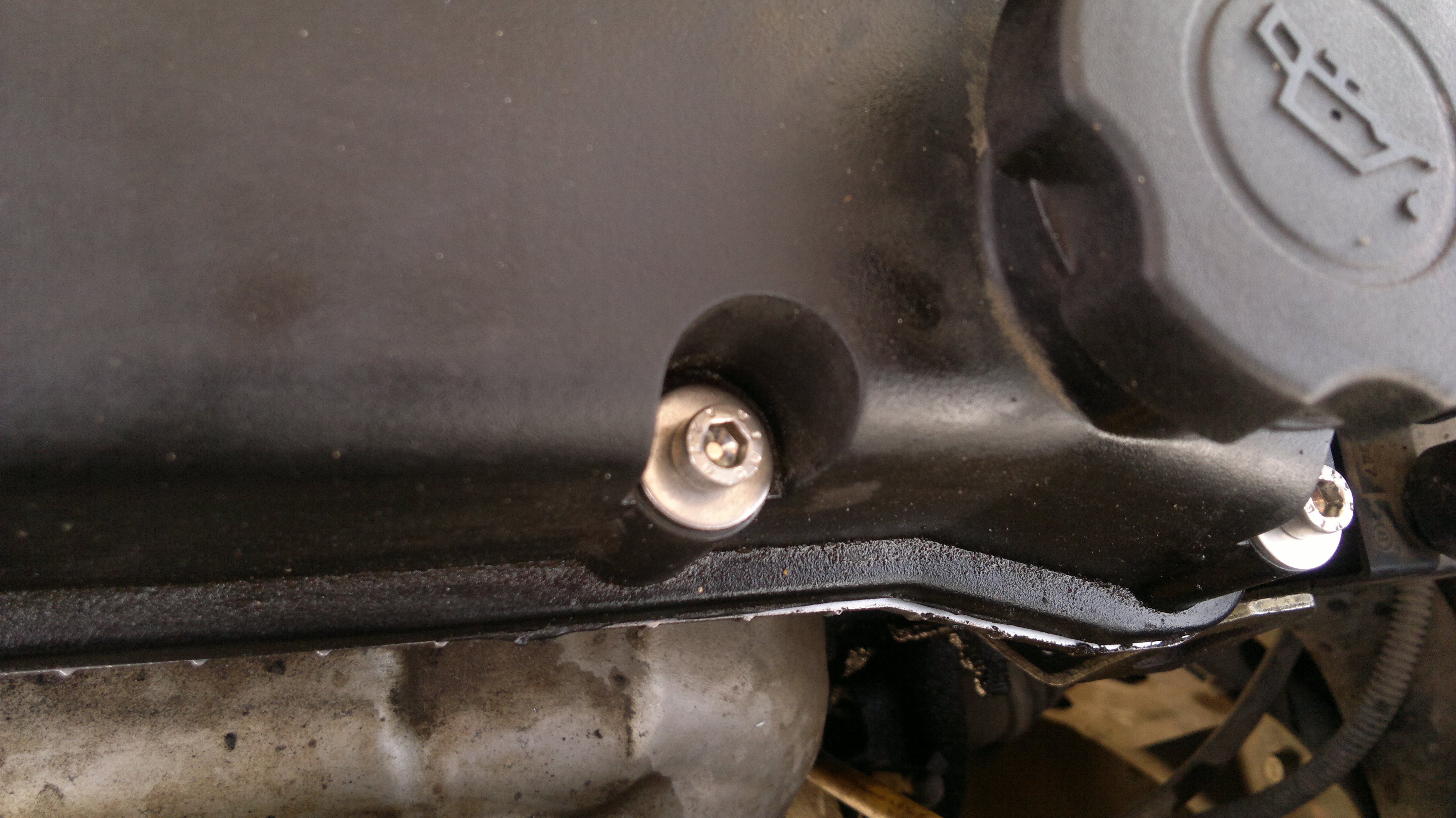 вчера поставил алюминиевую клапанную крышку с ланоса 1,6. Сегодня заглядывал- пока сухо.
